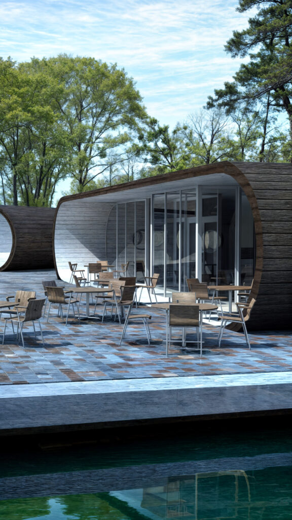 Prezentacja fotorealistycznych ujęć zewnętrznych oraz wnętrz nowoczesnego klubu jachtowego w Kiekrzu pod Poznaniem. Wizualizacje obejmują panoramiczne ujęcia przystani, budynku klubowego, tarasu widokowego oraz przestrzeni rekreacyjnych dla członków klubu. Projekt wykonany w technologii 3D, z naciskiem na detale architektoniczne i otoczenie jeziora Kierskiego.