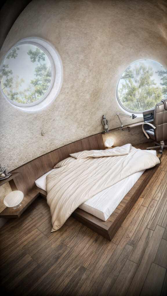 Nowoczesny eko dom kopułowy, który zachwyca swoim okrągłym, nietuzinkowym kształtem oraz ekologicznymi rozwiązaniami. Ten unikalny projekt łączy w sobie nowoczesną architekturę z dbałością o środowisko, zapewniając nie tylko wyjątkowy wygląd, ale również energooszczędność dzięki naturalnej izolacji i minimalizacji strat ciepła.