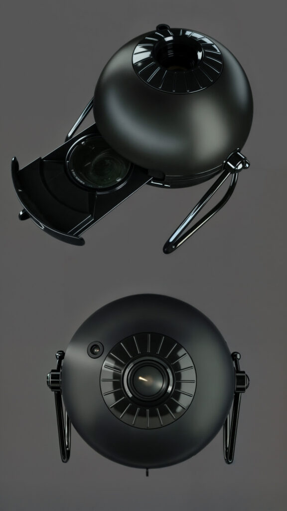 Wizualizacja 3d projektora marki SportsPartners, który wyróżnia się nowoczesnym designem i zaawansowaną technologią. Wizualizacja umożliwia dokładne obejrzenie produktu z każdej strony, podkreślając jego funkcjonalność i innowacyjne rozwiązania techniczne.