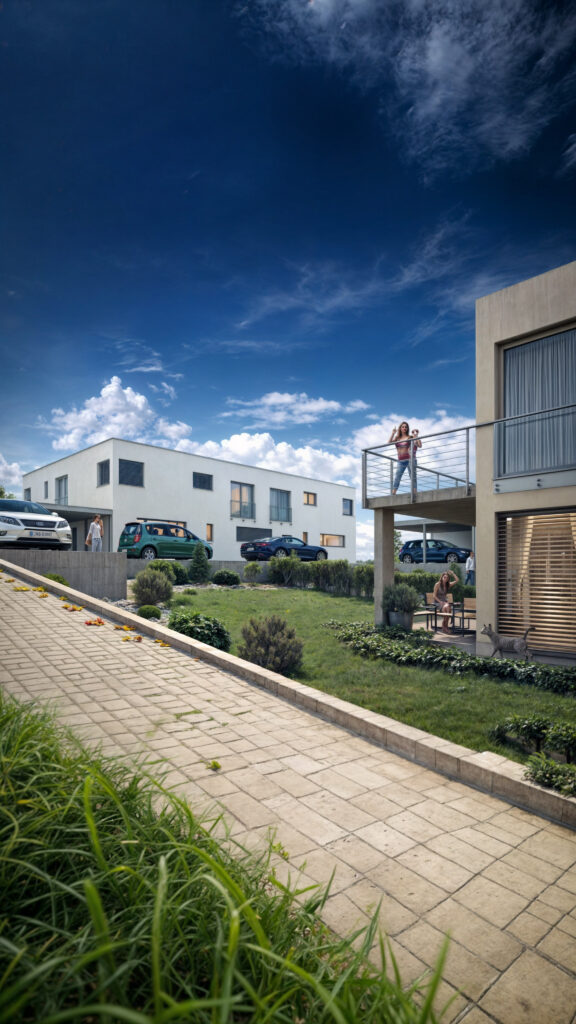 Wizualizacja prostych budynków wielorodzinnych zlokalizowanych w Wohlenschwil, Szwajcaria. Projekt wyróżnia się minimalistyczną architekturą, która łączy funkcjonalność z nowoczesnym designem. Budynki zaprojektowano z myślą o komfortowym użytkowaniu, z przestronnymi balkonami i dużymi przeszkleniami, które zapewniają optymalne doświetlenie wnętrz. Wizualizacja ukazuje osiedle w harmonii z otaczającą zielenią, tworząc przestrzeń idealną do życia