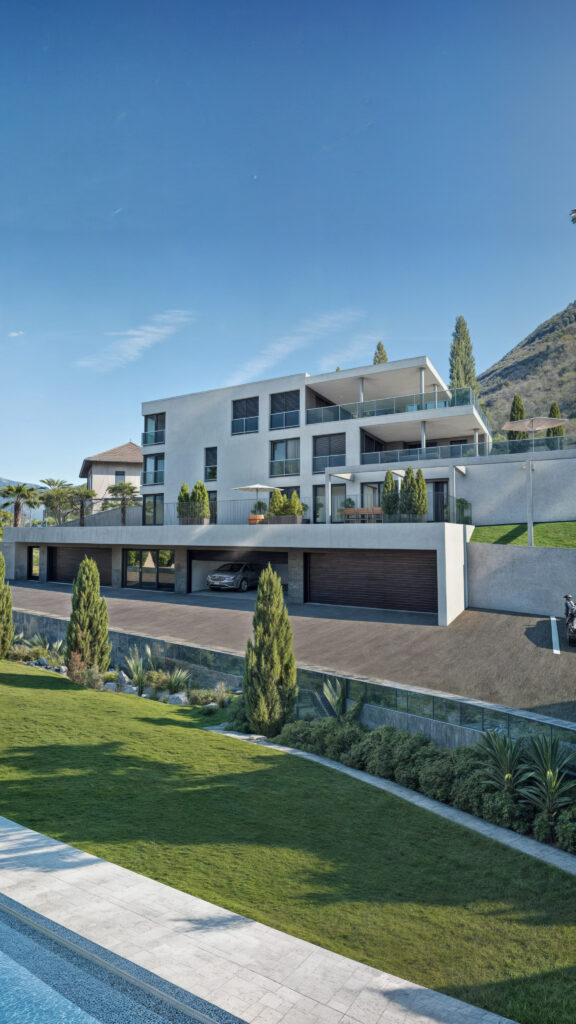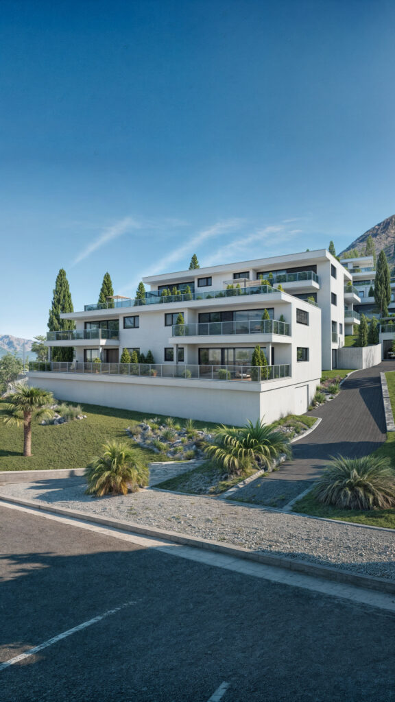 Wizualizacje 3D prestiżowego osiedla w Piazzogna w Szwajcaria. Współpraca obejmowała szczegółowe ujęcia z zewnątrz budynków oraz z lotu ptaka, co pozwala w pełni zaprezentować architekturę i układ przestrzenny inwestycji. Wizualizacje te pomagają deweloperom i inwestorom w skutecznej prezentacji projektu, podkreślając jego ekskluzywność oraz nowoczesny design. Dzięki naszym fotorealistycznym wizualizacjom 3D, Twoje osiedle zyska na atrakcyjności w oczach klientów.