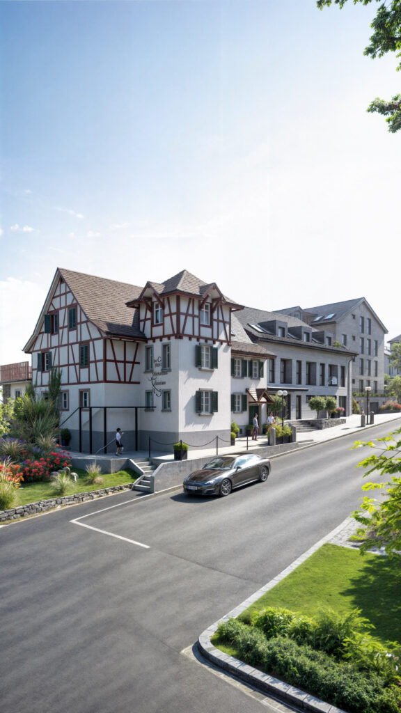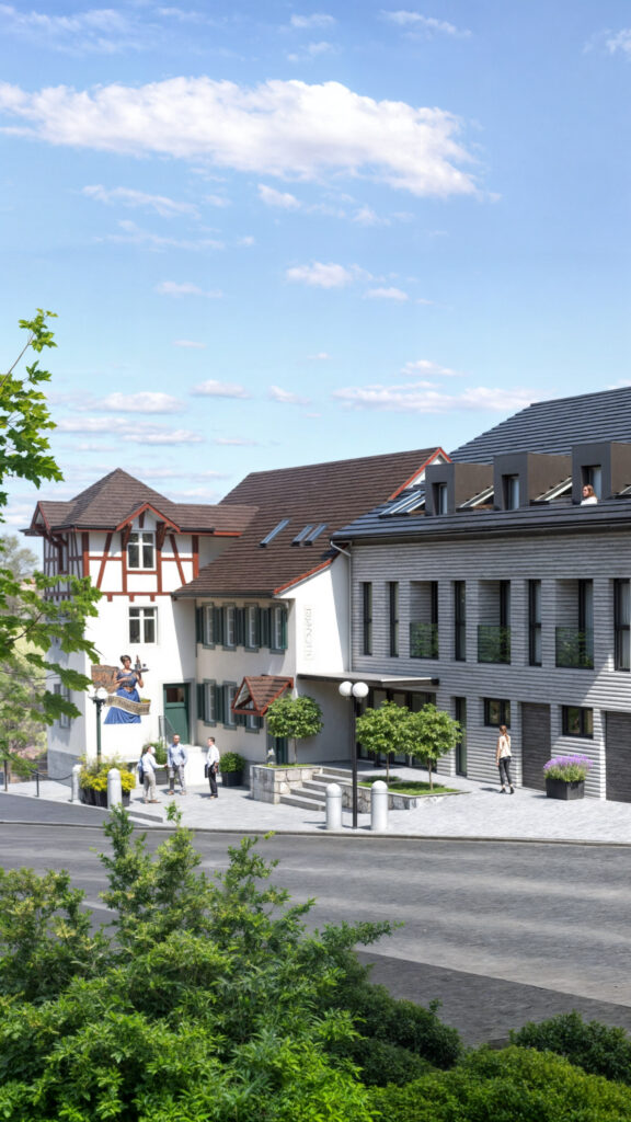Prezentujemy wizualizację rozbudowy hotelu-restauracji w Dielsdorf, Szwajcaria. Projekt łączy nowoczesne rozwiązania z zachowaniem eleganckiego stylu, który idealnie komponuje się z otoczeniem. Aby lepiej zaprezentować bryłę budynku, dodatkowo wykonaliśmy druk 3D, który pozwala inwestorom lepiej zrozumieć proporcje i szczegóły architektoniczne. Dzięki temu narzędziu możliwa jest dokładniejsza ocena estetyki i funkcjonalności rozbudowanego obiektu.