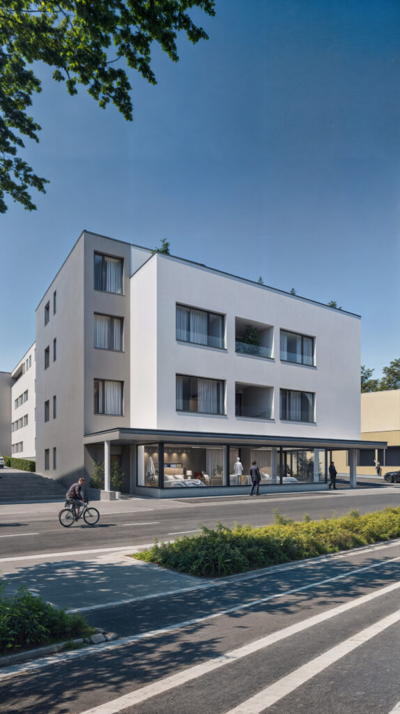 Prezentujemy wizualizację rozbudowy budynku usługowego w Spaichingen, Niemcy. Projekt obejmuje unowocześnienie oraz rozbudowę istniejącego budynku, zachowując jego pierwotny charakter, jednocześnie wprowadzając nowoczesne elementy architektoniczne. Dzięki temu obiekt łączy w sobie tradycję z nowoczesnością, oferując funkcjonalną i estetyczną przestrzeń usługową, dostosowaną do współczesnych standardów.