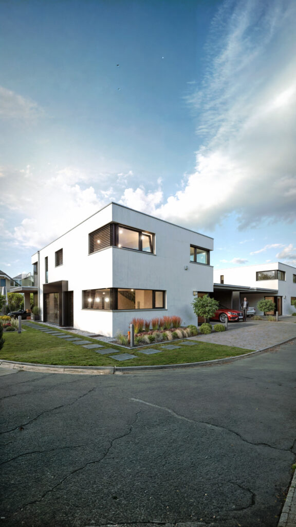 Prezentujemy wizualizację architektury Cube Haus w Therwil, Szwajcaria, zrealizowaną w 2017 roku. Projekt wyróżnia się minimalistycznym, geometrycznym designem, który idealnie wpisuje się w nowoczesne trendy architektoniczne. Rzut budynku podkreśla funkcjonalny układ przestrzeni wewnętrznych, łącząc elegancję z praktycznością. Dzięki naszym szczegółowym wizualizacjom i rzutowi budynku, inwestorzy mogą dokładnie zobaczyć każdy aspekt projektu.