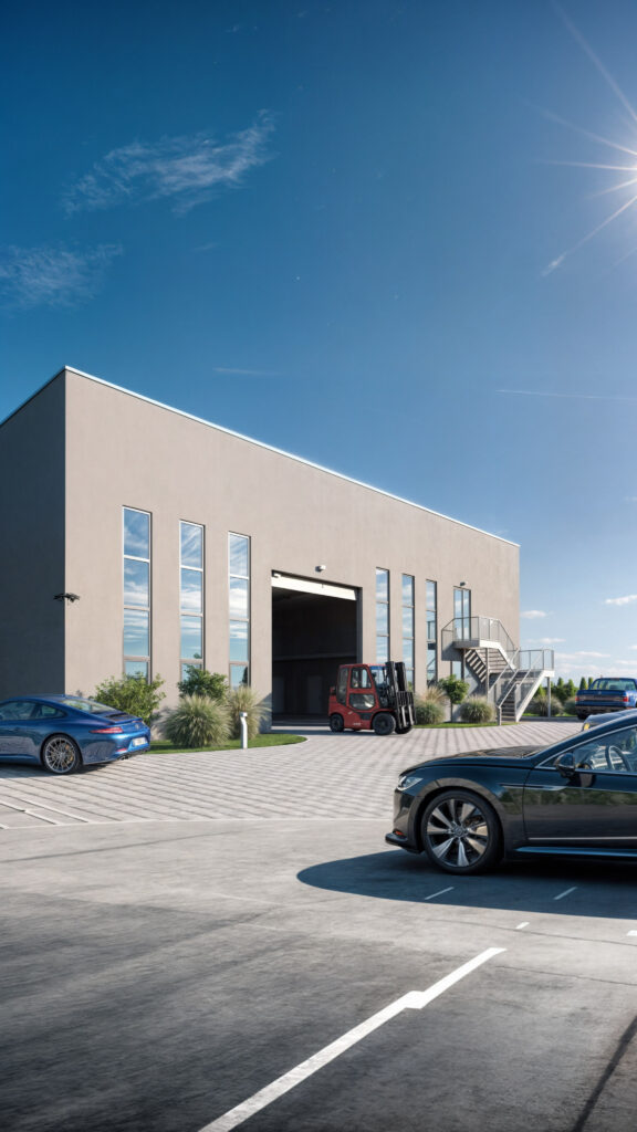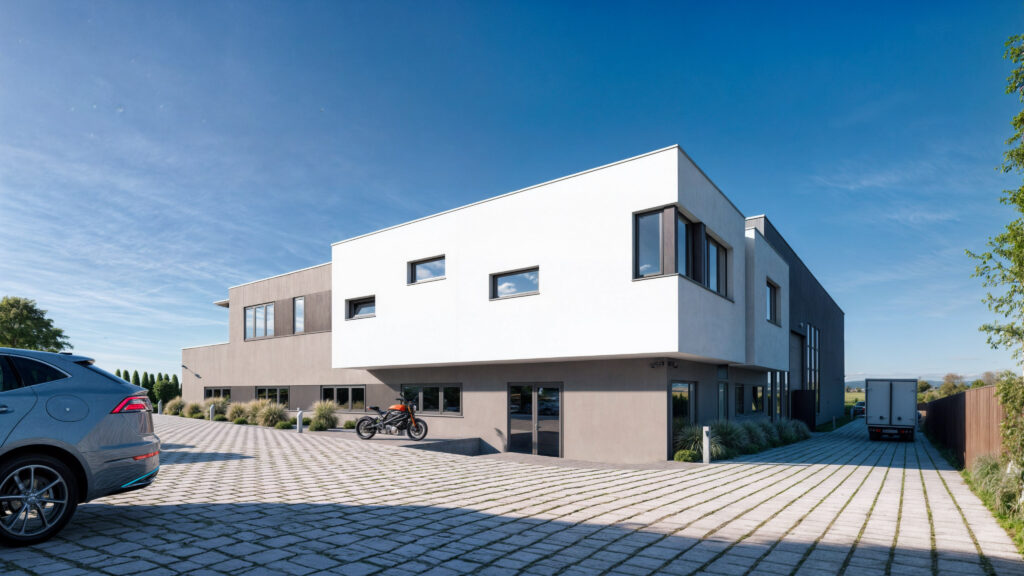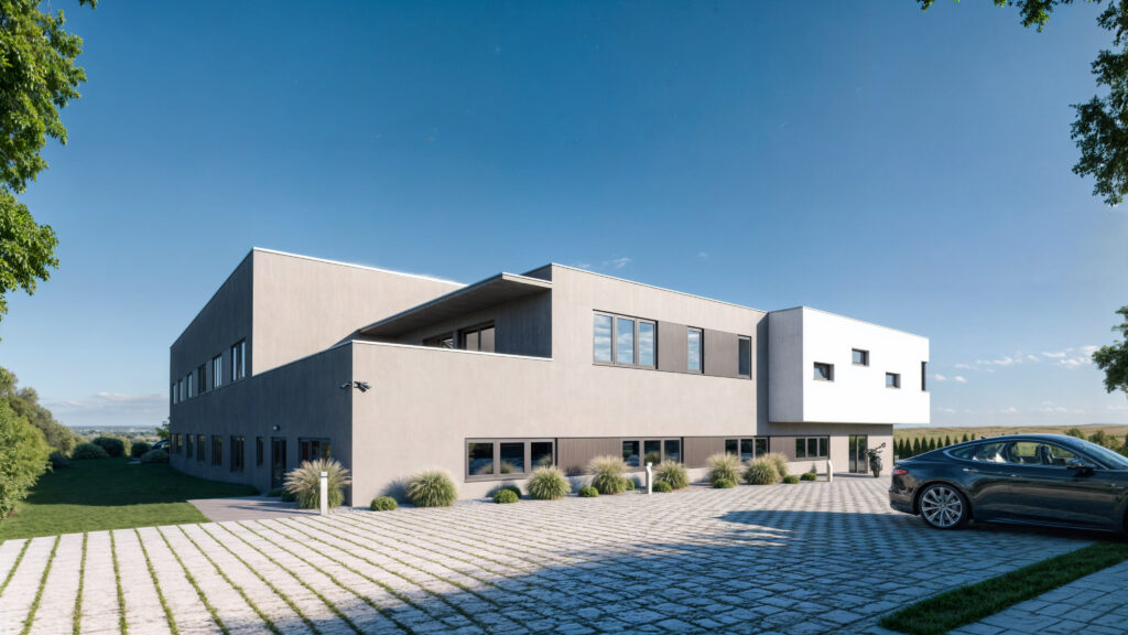 Profesjonalne wizualizacje 3D nowoczesnej hali przemysłowej z pomieszczeniami socjalnymi i mieszkaniem dla pracowników w Gurwolf, Courgevaux. Nasze wizualizacje łączą w sobie najwyższą jakość detali architektonicznych i funkcjonalnych, pokazując układ wnętrz hali, ergonomiczne zaplecze socjalne oraz komfortowe mieszkanie dla personelu. Dzięki realistycznym wizualizacjom 3D nasi klienci mogą zaprezentować projekt w sposób atrakcyjny i zrozumiały, ułatwiając podejmowanie decyzji inwestycyjnych. Specjalizujemy się w tworzeniu wizualizacji, które podnoszą wartość inwestycji i pomagają w ich skutecznej prezentacji.