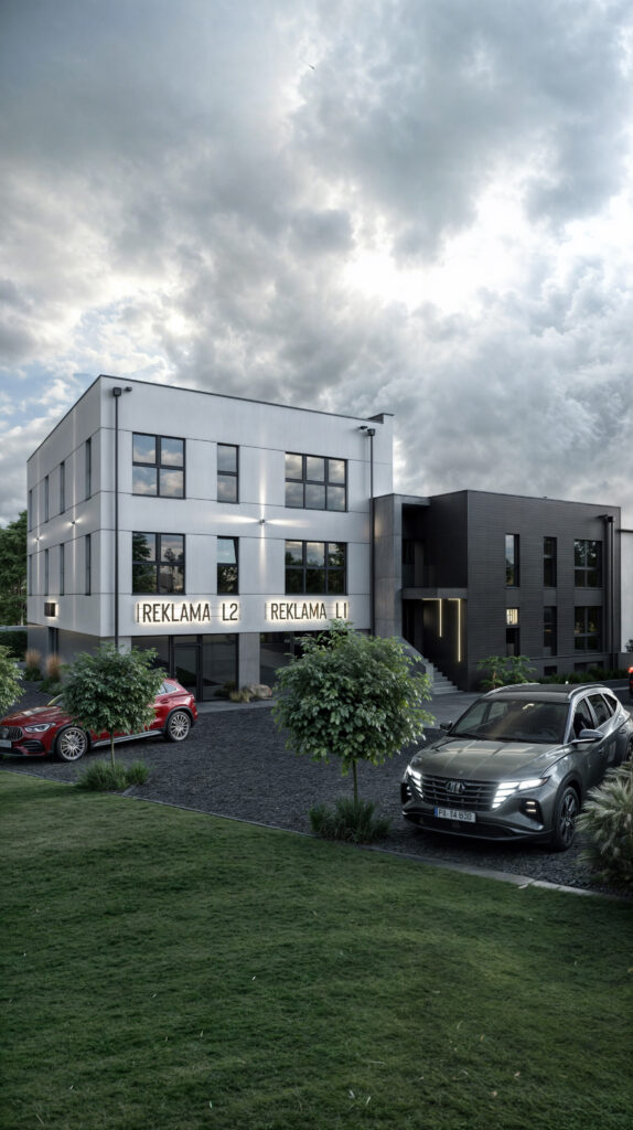 Nasze profesjonalne wizualizacje 3D przedstawiają nowoczesną elewację oraz rozbudowę budynku mieszkalno-usługowego przy ul. Kąkolewskiej w Lesznie. Projekt ukazuje eleganckie, współczesne rozwiązania architektoniczne, które odświeżają i unowocześniają istniejącą strukturę budynku. Dzięki fotorealistycznym wizualizacjom, inwestorzy mogą zobaczyć, jak nowa elewacja oraz dodatkowa część budynku będą wyglądać po zakończeniu prac, co pomaga w podejmowaniu świadomych decyzji na etapie projektowania i realizacji.