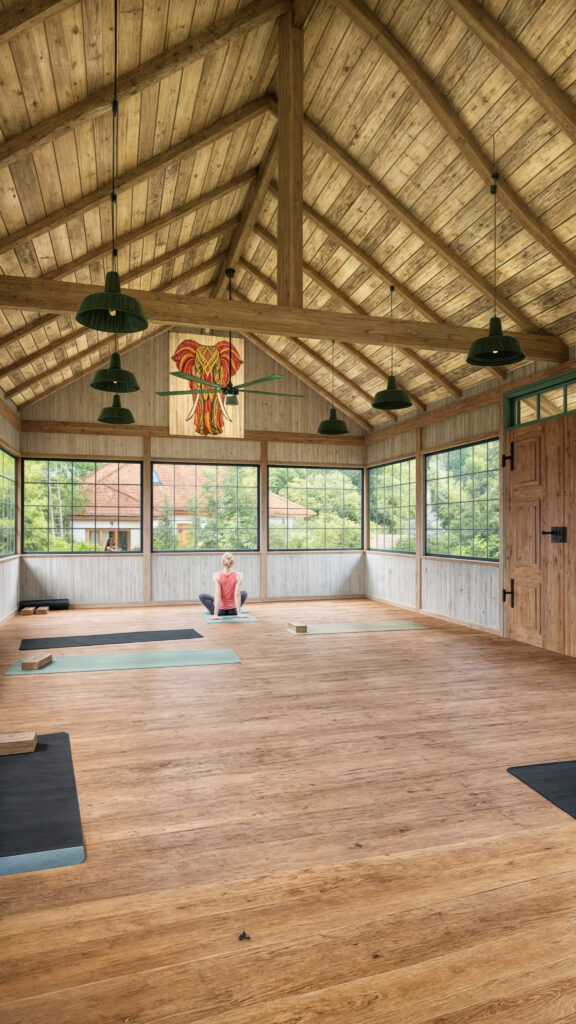 Prezentujemy wyjątkowe wizualizacje 3D wnętrza wiaty przekształconej w salę do jogi. Projekt autorstwa Marcina Rady łączy minimalistyczny design z funkcjonalnością, tworząc idealne miejsce do medytacji i ćwiczeń jogi. Wizualizacje ukazują przestronne wnętrze, naturalne materiały, dużą ilość światła dziennego oraz harmonię z otaczającą przyrodą, co sprzyja atmosferze relaksu i wyciszenia.