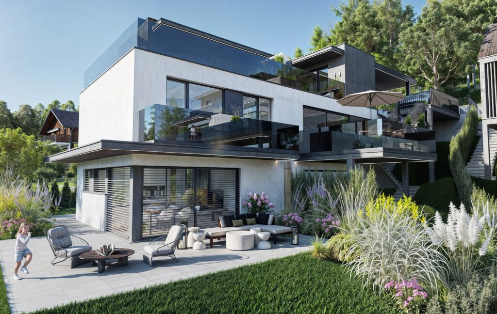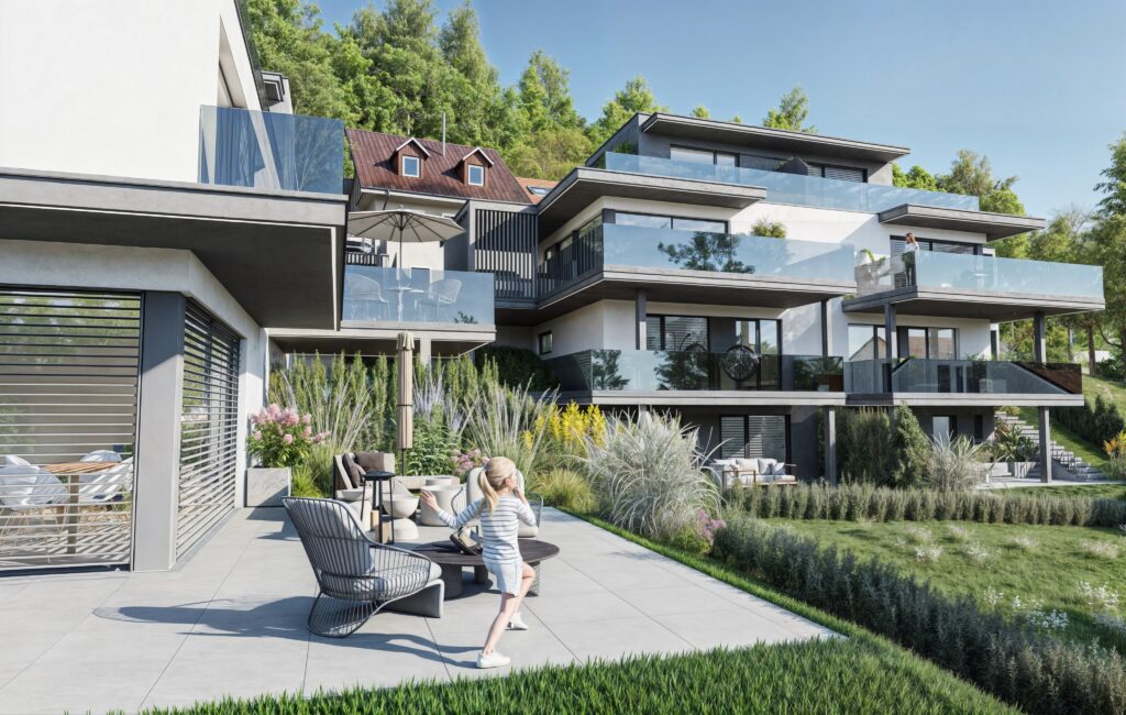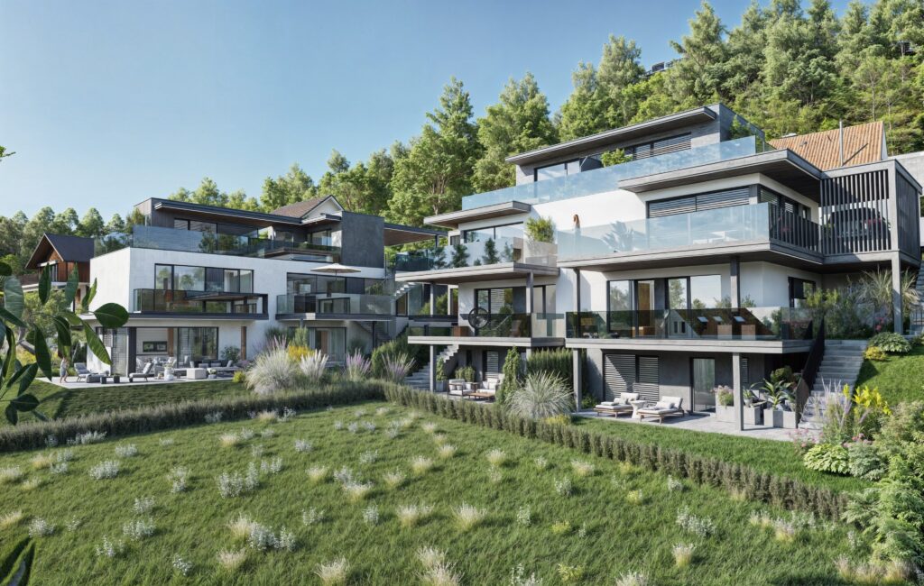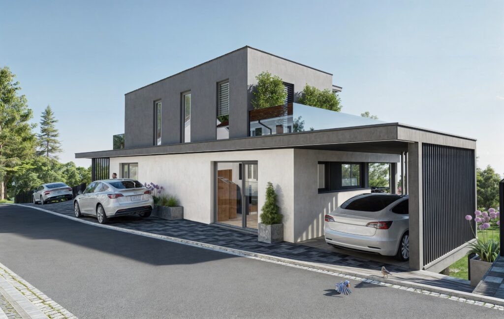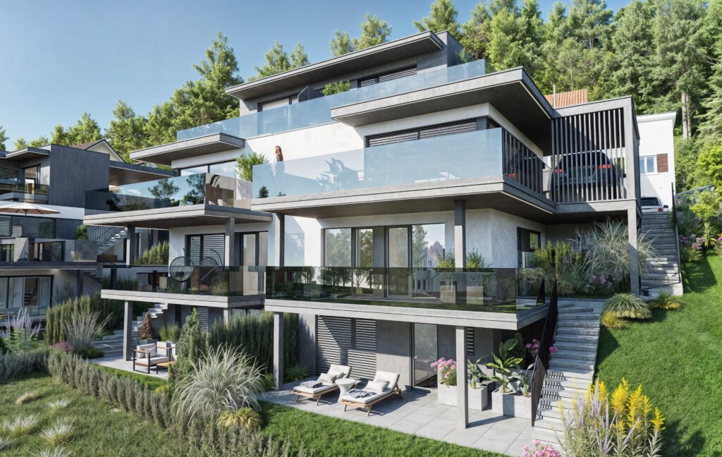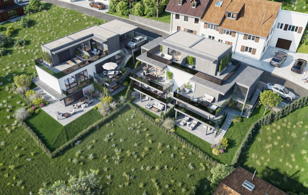 Prezentujemy profesjonalne wizualizacje 3D nowoczesnych domów mieszkalnych w Kleinlützel, Szwajcaria, zawierających łącznie 4 przestronne mieszkania. Nasze wizualizacje ukazują nowoczesną architekturę, elegancką elewację oraz funkcjonalne układy pomieszczeń, które zapewniają komfort i wygodę przyszłym mieszkańcom. Projekt doskonale wpisuje się w otaczający krajobraz, a duże okna zapewniają doskonałe doświetlenie wnętrz i bezpośrednie połączenie z naturą.