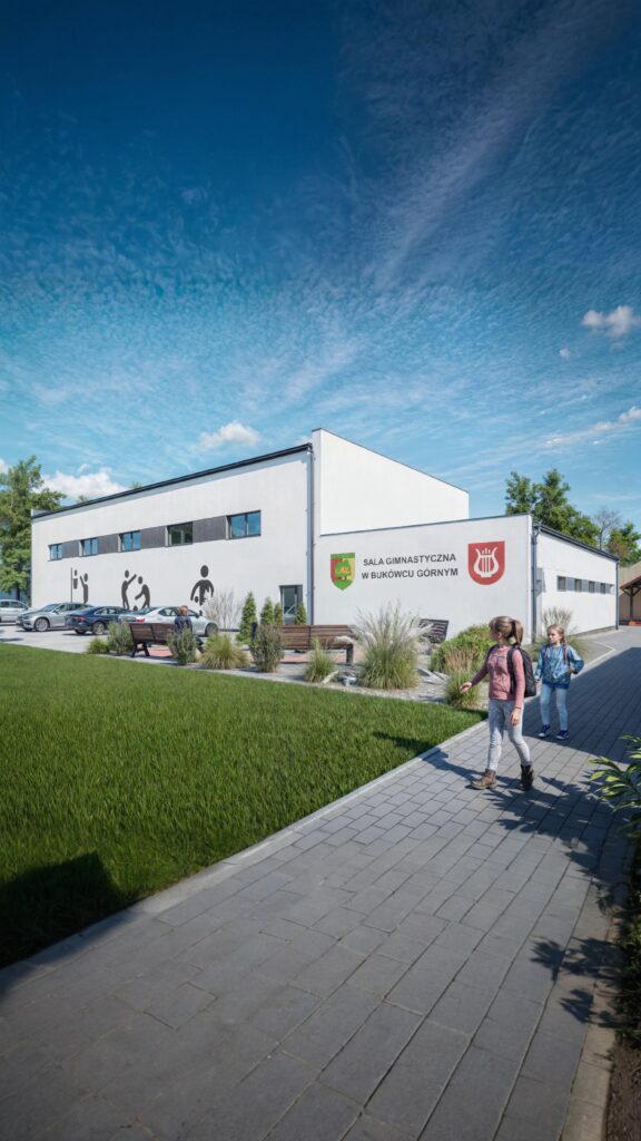 Zrealizowaliśmy profesjonalne wizualizacje projektu sali gimnastycznej w Bukówcu Górnym, zarówno z zewnątrz, jak i wewnątrz budynku. Dzięki wykorzystaniu ujęć z drona oraz precyzyjnemu wymodelowaniu budynku, mogliśmy szczegółowo ukazać, jak sala gimnastyczna będzie harmonijnie wpisywać się w otoczenie. Nasze fotorealistyczne wizualizacje 3D przedstawiają nowoczesny design i funkcjonalność obiektu, zapewniając inwestorom pełen obraz tego, jak projekt będzie wyglądał po realizacji.