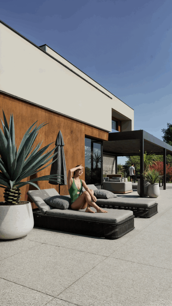 Całość została zaprojektowana tak, aby tworzyć spójne i funkcjonalne otoczenie, idealnie dopełniające architekturę budynku. Realistyczne wizualizacje 3D pozwalają już teraz poczuć klimat tego miejsca i zobaczyć, jak przestrzeń nabiera charakteru.