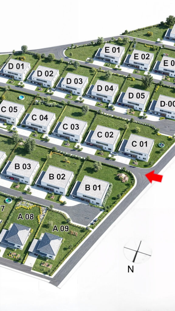 Oferujemy kompleksowe wizualizacje 3D dla dużych inwestycji mieszkaniowych, takich jak kompleks domów w Bulle, Szwajcaria. Nasze fotorealistyczne wizualizacje ukazują nowoczesną architekturę oraz funkcjonalność każdego z budynków. W ramach tej współpracy dodatkowo wykonaliśmy rysunek 2D rzutu osiedla, co pozwala lepiej wyobrazić sobie układ przestrzenny całego kompleksu. Dzięki szczegółowym wizualizacjom i rysunkom 2D, deweloperzy mogą skuteczniej prezentować swoje projekty i przyciągać uwagę potencjalnych inwestorów.