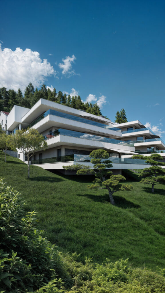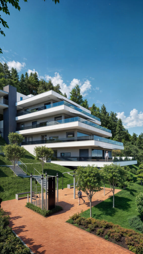 Projekt ten łączy nowoczesną architekturę z wyjątkową lokalizacją, oferując przestronne apartamenty z tarasami, które zapewniają zapierające dech w piersiach widoki na otaczający krajobraz. Wizualizacje ukazują elegancki design budynku, dużą ilość naturalnego światła oraz doskonałe połączenie wnętrz z przestrzeniami zewnętrznymi, tworząc idealne miejsce do życia w zgodzie z naturą.