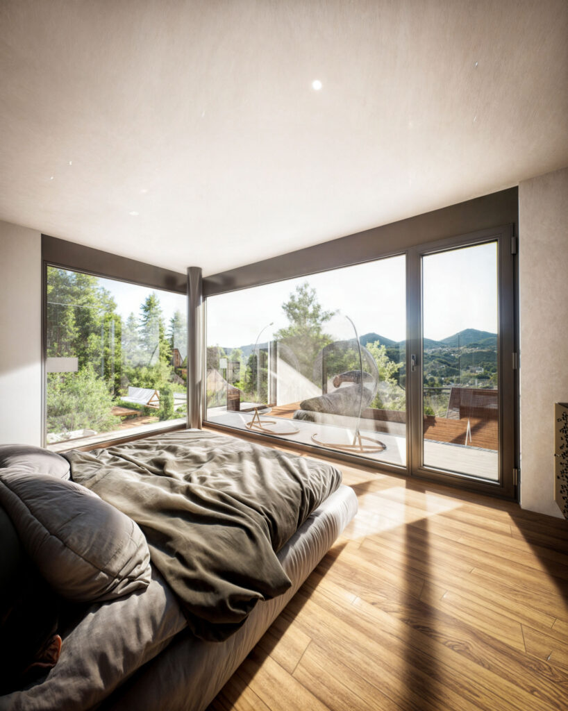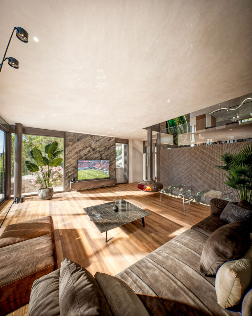 Prezentujemy wizualizacje 3D dwóch ekskluzywnych budynków jednorodzinnych w Muttenz, Szwajcaria, które ukazują nowoczesną architekturę i elegancję w każdym detalu. Projekt obejmuje realistyczne ujęcia zewnętrzne zarówno w dziennym, jak i wieczornym oświetleniu, co pozwala zobaczyć, jak budynki harmonijnie wkomponowują się w otaczający krajobraz o różnych porach dnia. Przestronne tarasy, nowoczesne wykończenia oraz duże przeszklenia tworzą efektowne połączenie z naturalnym otoczeniem.