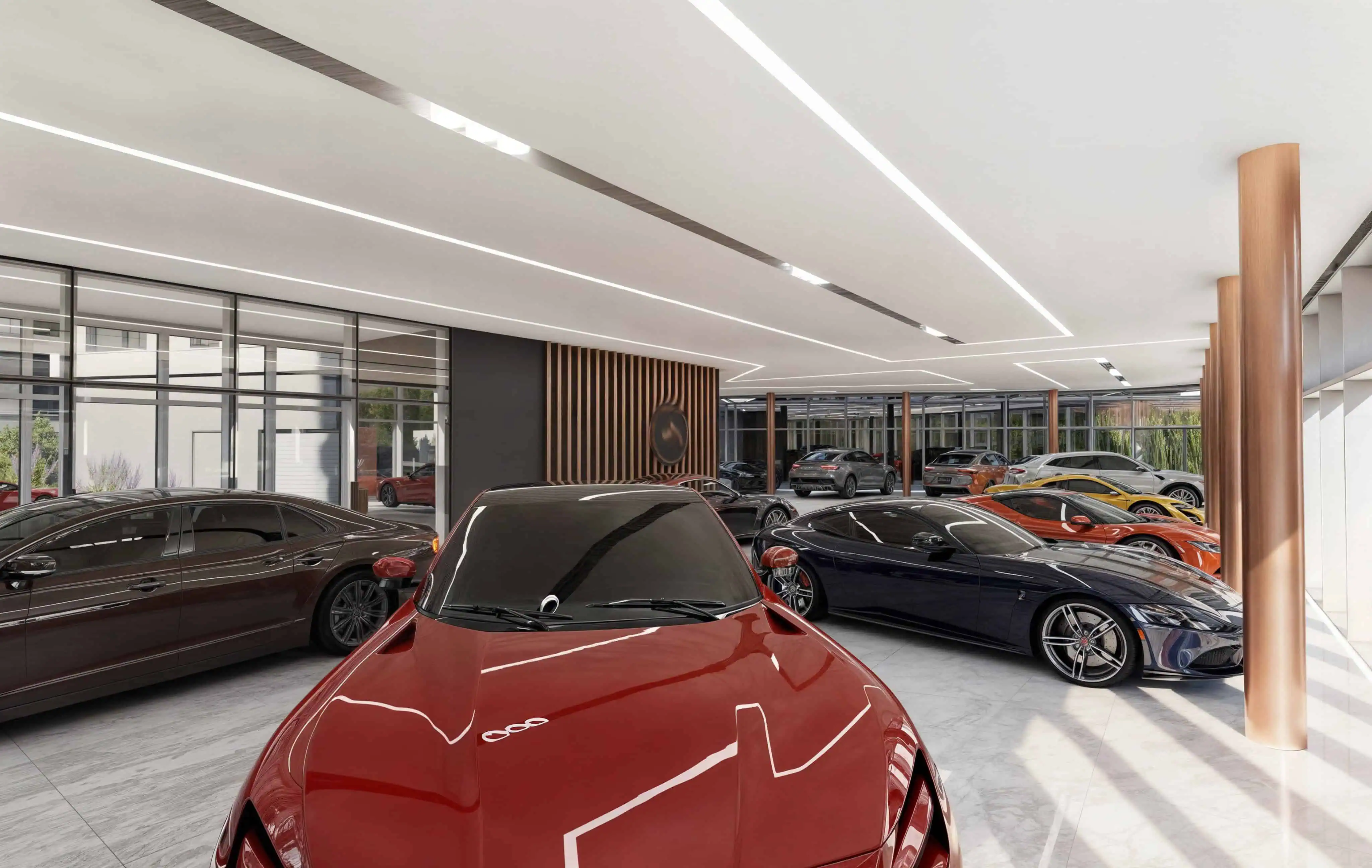 Ekskluzywna przestrzeń dedykowana prestiżowym markom samochodowym.Nasza firma miała przyjemność stworzyć dla klienta fotorealistyczne wizualizacje wnętrza showroomu samochodów luksusowych. Projekt wnętrza został zaprojektowany z dbałością o nowoczesność, elegancję i najwyższą precyzję wykonania. Każdy detal przestrzeni został starannie dopracowany, aby podkreślić prestiż i wyjątkowość ekskluzywnych pojazdów prezentowanych w showroomie. Zastosowane rozwiązania przestrzenne i oświetleniowe idealnie współgrają z charakterem miejsca, tworząc unikalny klimat sprzyjający budowaniu pozytywnego doświadczenia klientów.