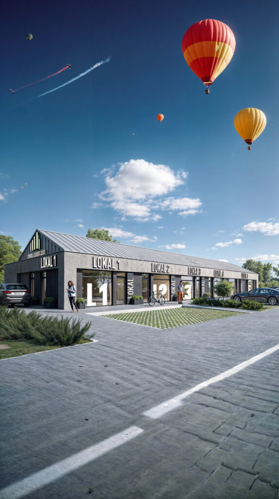 Nasze wizualizacje 3D mini centrum pawilonu usługowego w Święciechowie, Leszno, pozwalają zobaczyć, jak nowy budynek wkomponuje się w istniejące otoczenie. Projekt ukazuje, jak nowoczesny pawilon usługowy harmonijnie współgra z przestrzenią miejską, oferując funkcjonalne rozwiązania zarówno dla lokalnych przedsiębiorców, jak i klientów. Wizualizacje przedstawiają pełen kontekst zabudowy, w tym rozkład budynku, jego elewację oraz zagospodarowanie przestrzeni wokół pawilonu.